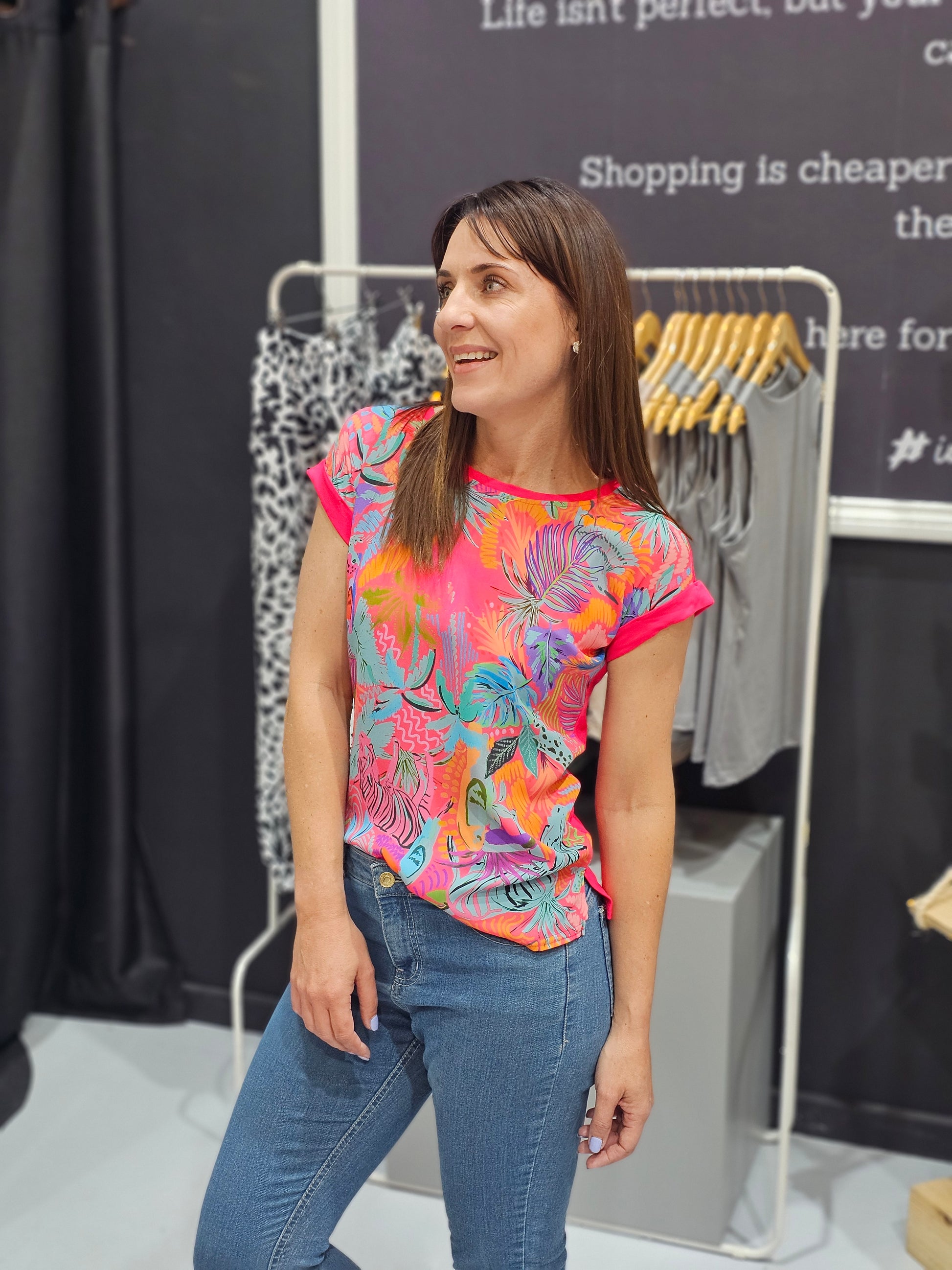 Style: Turn-up style sleeve, round neck-line t-shirt. Length from underarm to hem= 40cm
