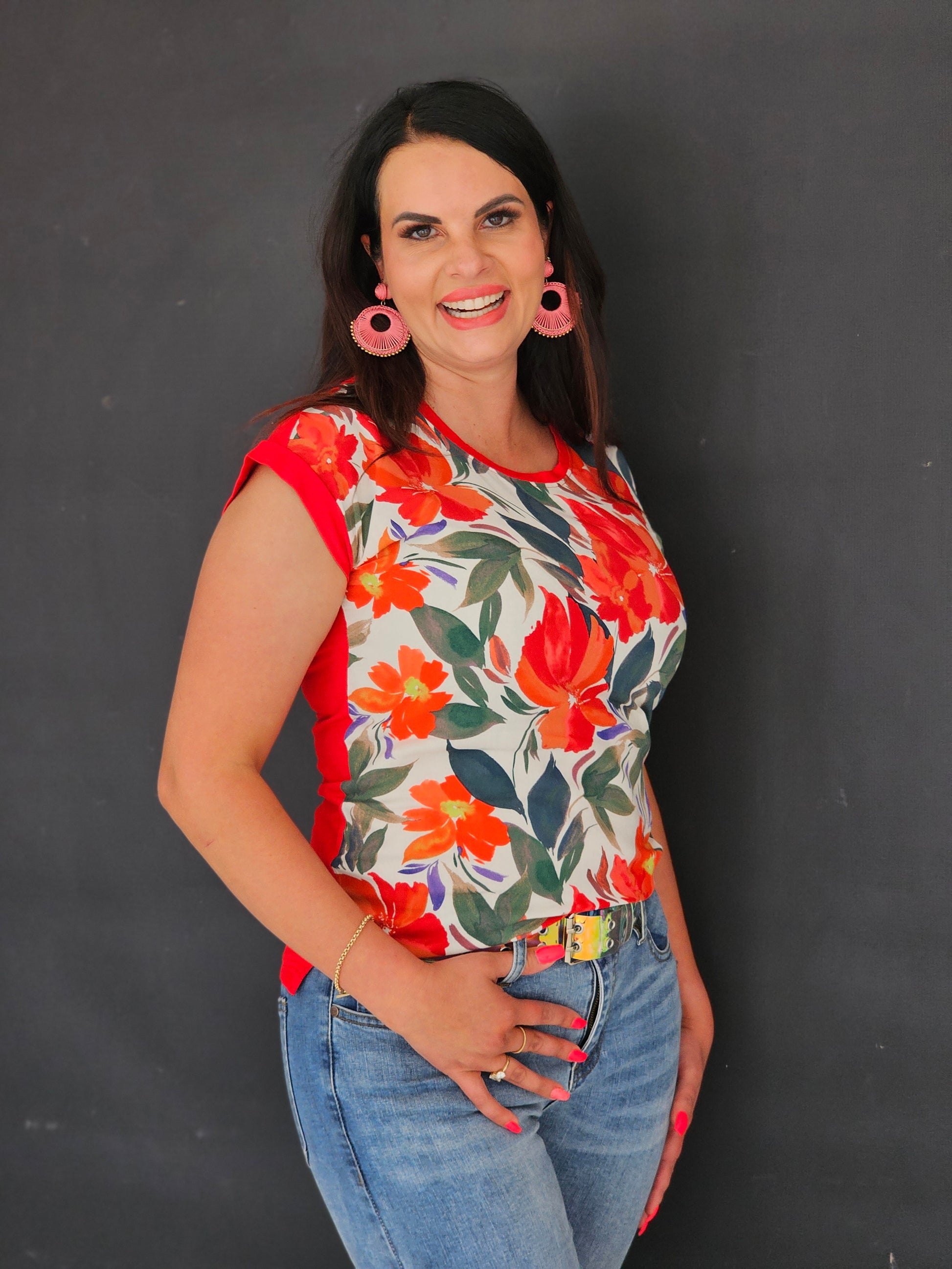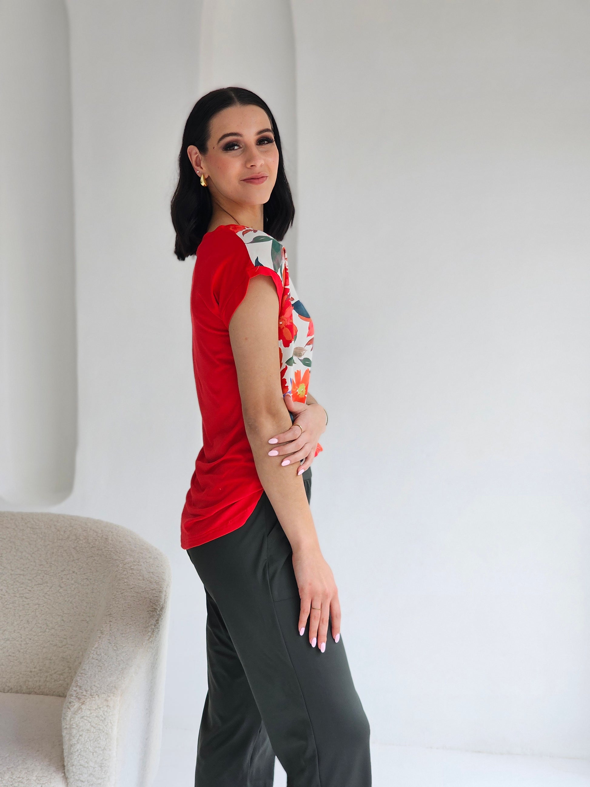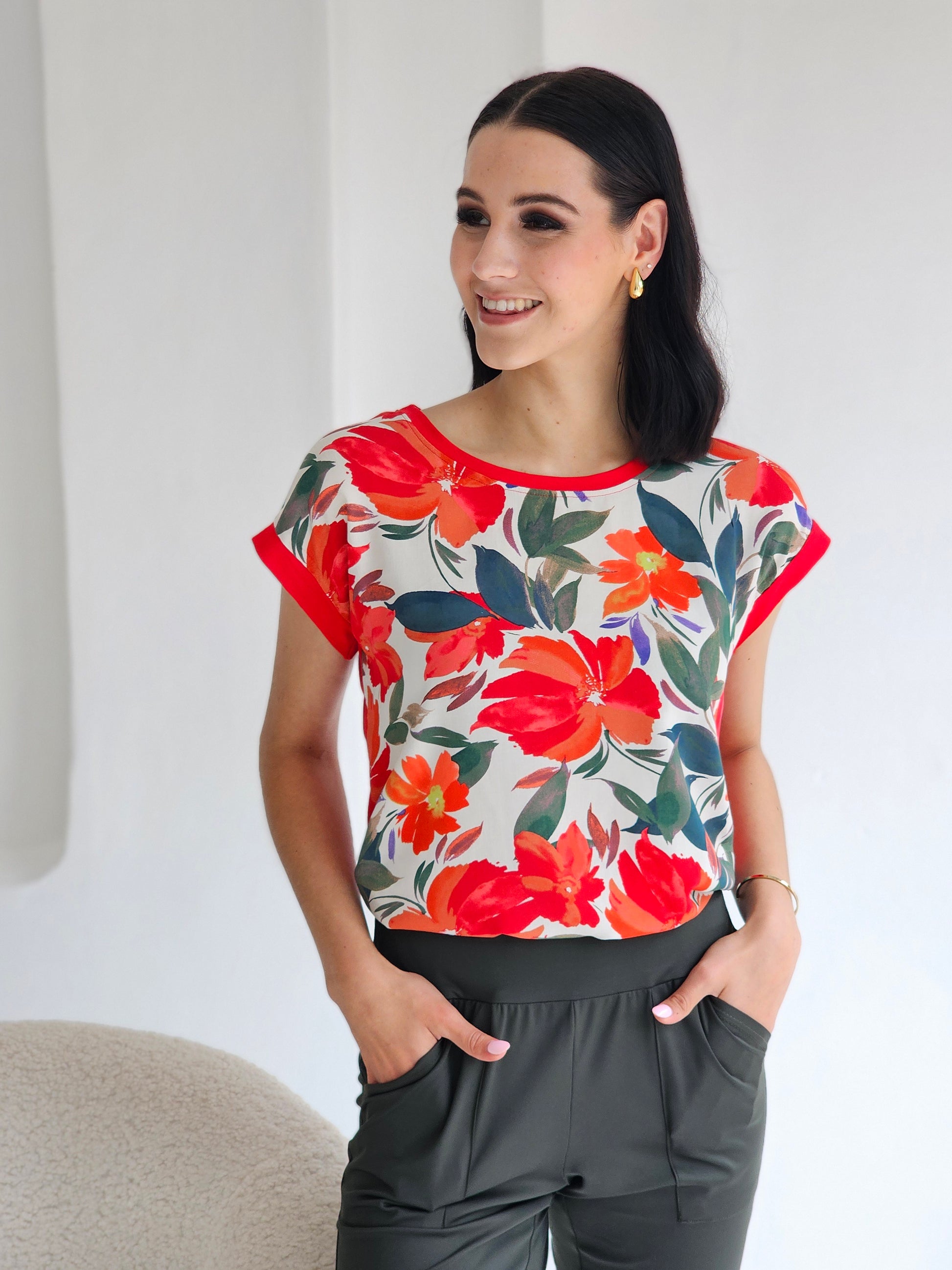 Fabric : Viscose print in the front and a super soft dty stretch fabric in the back and sleeves