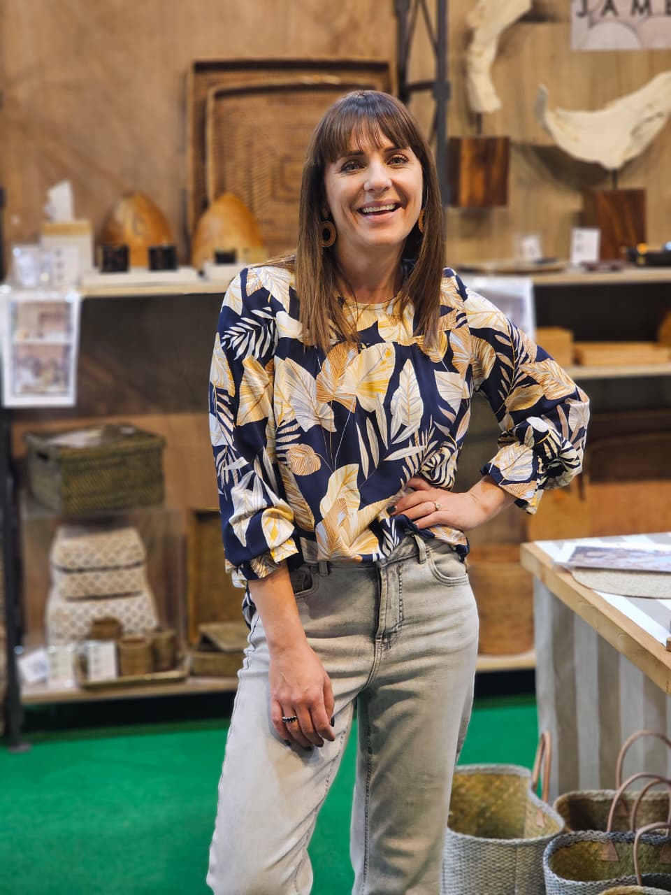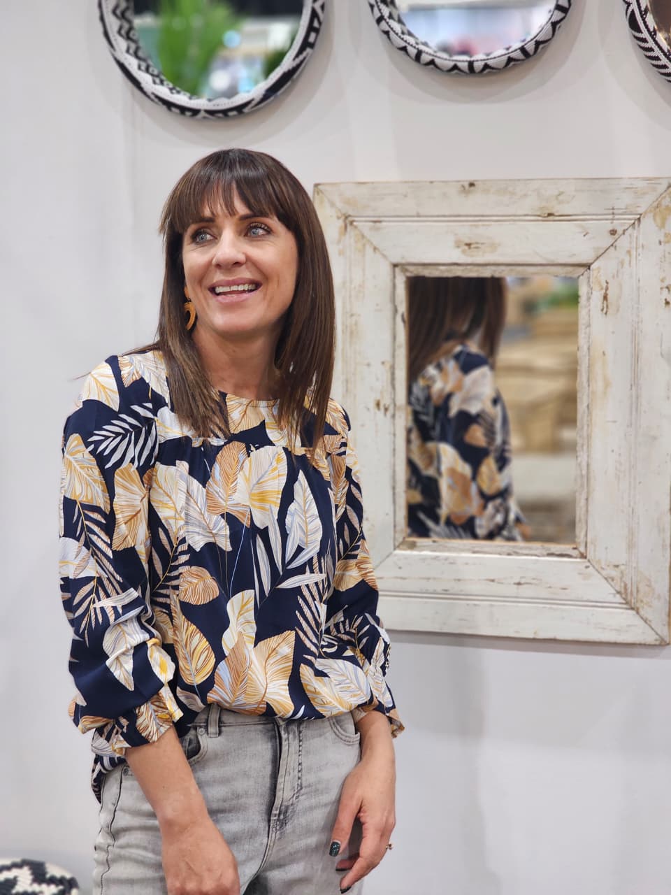 Style: Long sleeve blouse featuring a high neckline and soft frill detail at the sleeve.
